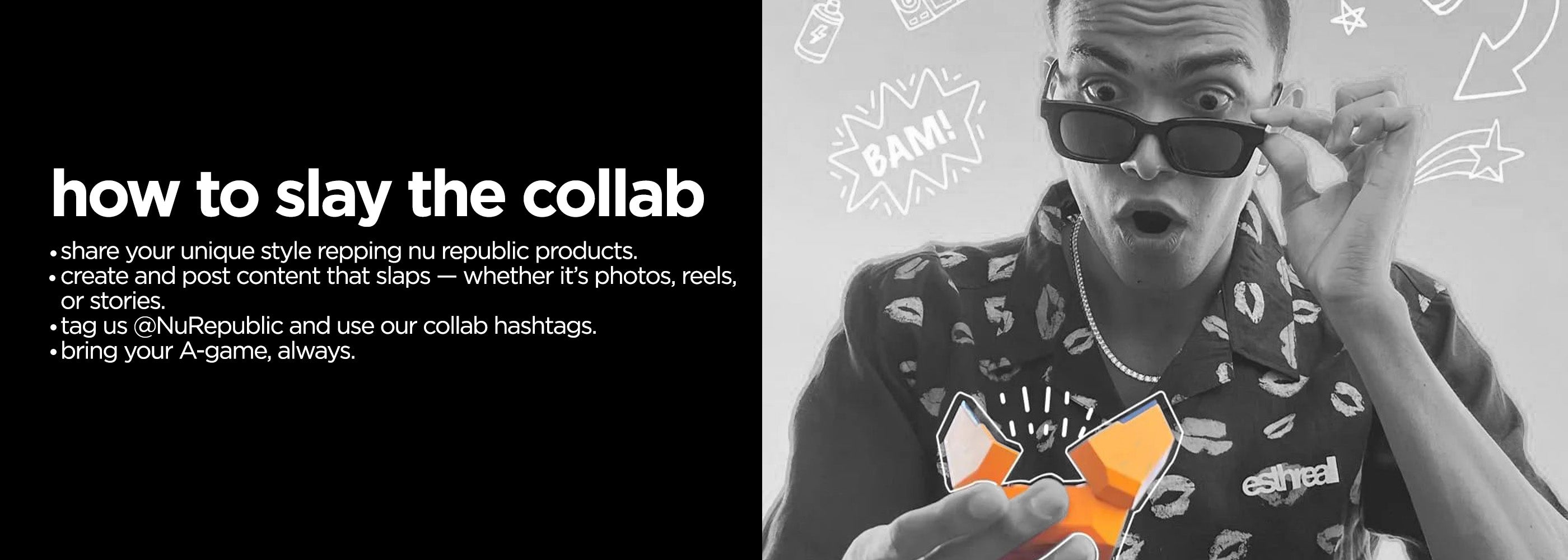 nu republic is all about bringing the cool, cutting-edge wear-tech to the streets. we’re on the lookout for trendsetters, content creators, and all-around dope personalities to help us push the boundaries of what's possible. if you're vibing with fresh tech, bold style, and that non-stop hustle, then this collab is made for you!