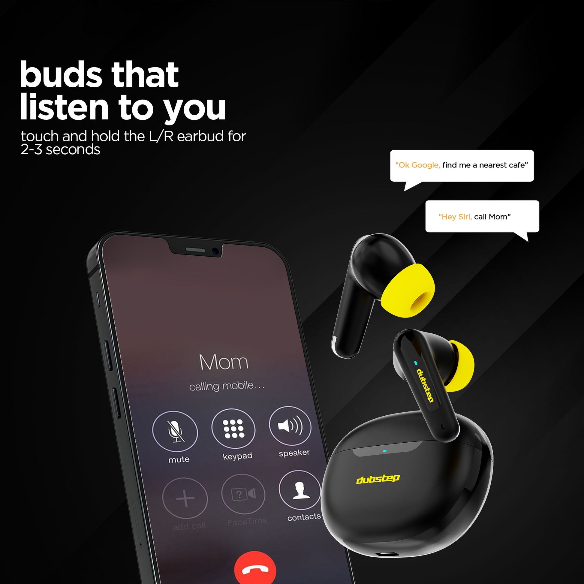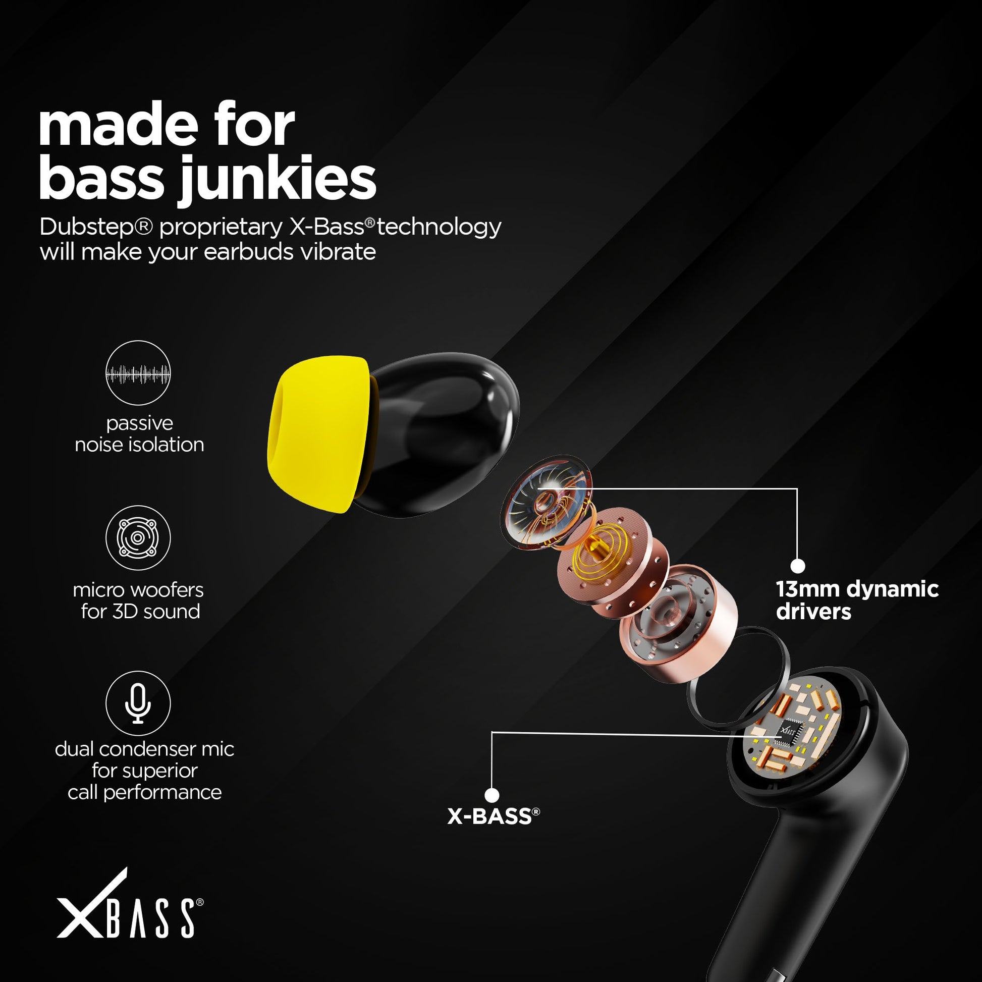 Bring home the bass with Buzz X5 true wireless earphones by Dubstep Powered by our patented X-Bass® technology and powerful 13mm neodymium drivers, get ready to feel your bones rattle. The super ergonomic designs with soft silicon earbuds and a heavy 50hrs playtime will make you be one with your tunes nonstop.