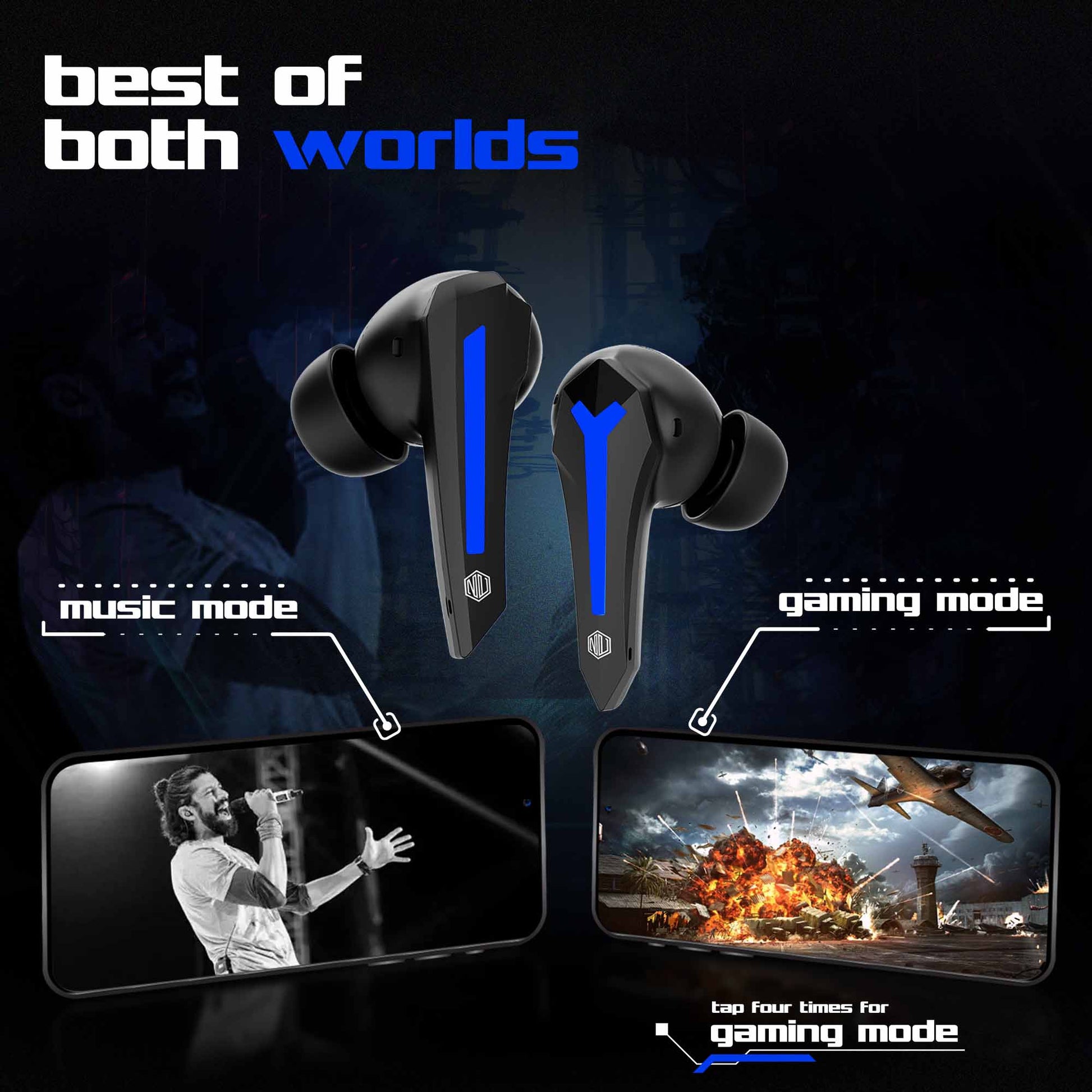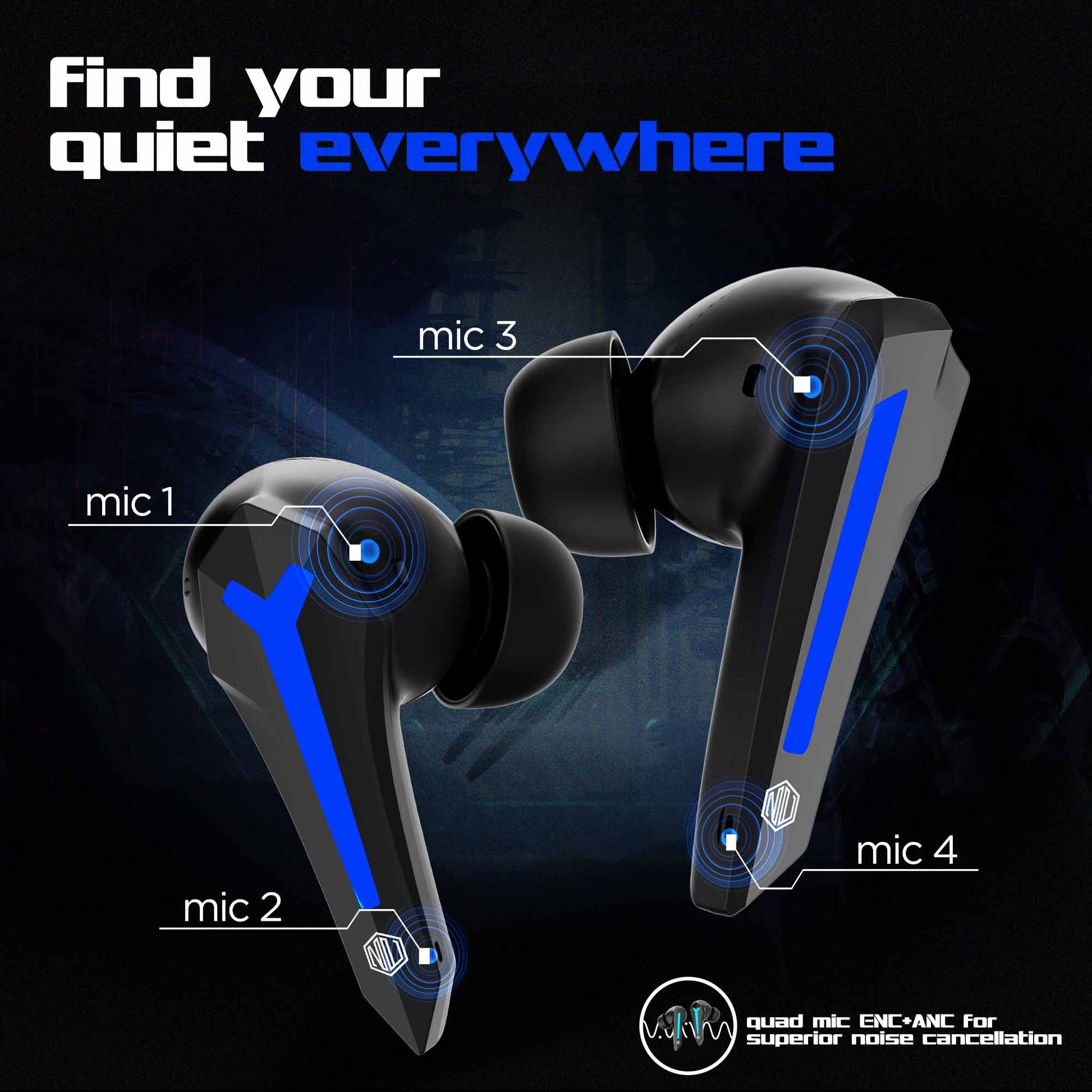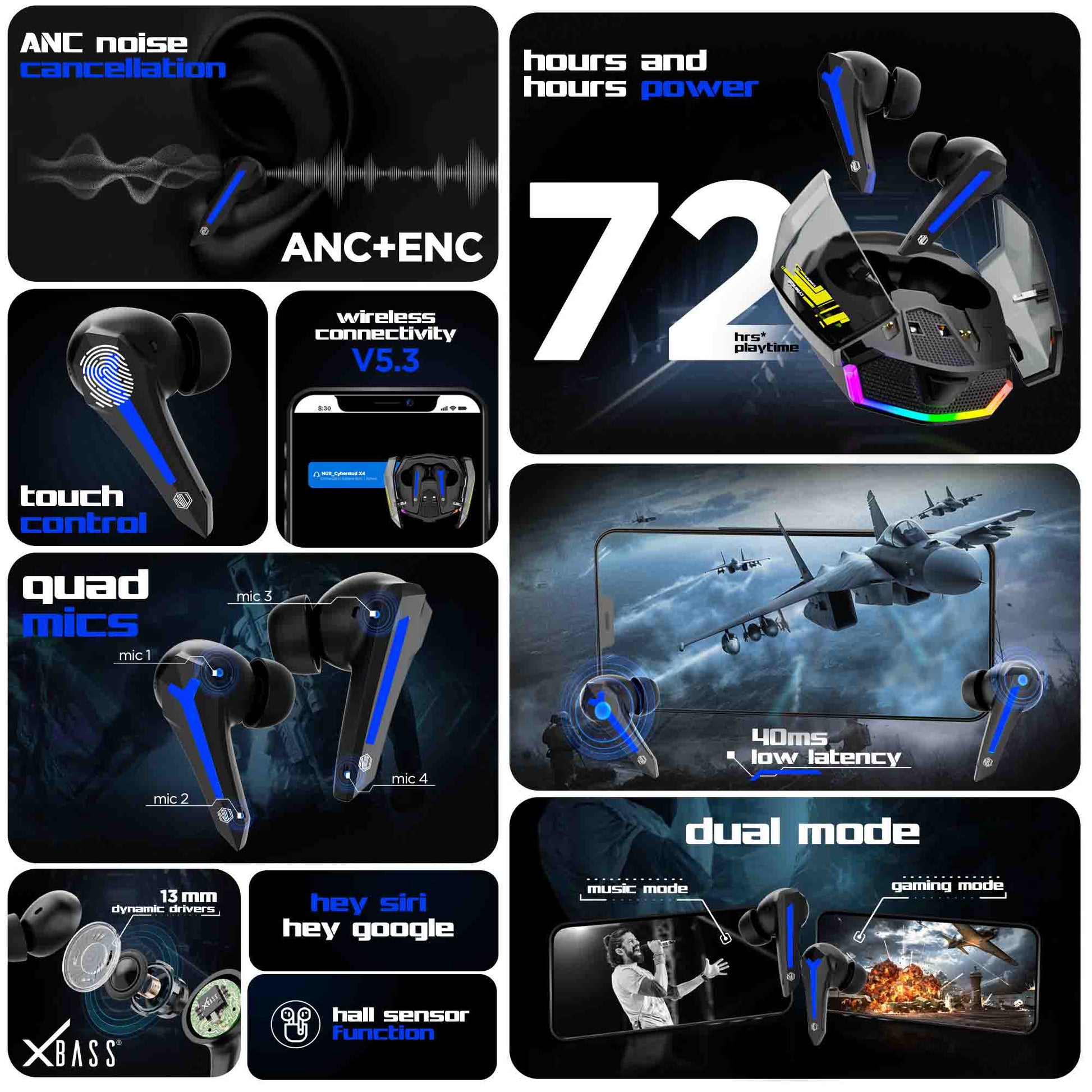 The Nu Republic's Cyberstud X4 True Wireless Earbuds feature advanced noise cancellation (ANC+ENC), 40ms low latency, 72 hours of playtime, and quad mics for clear audio. With 13mm neodymium drivers, X-Bass® technology, dual audio modes, RGB lights, and a fidget design, they’re perfect for music and gaming.