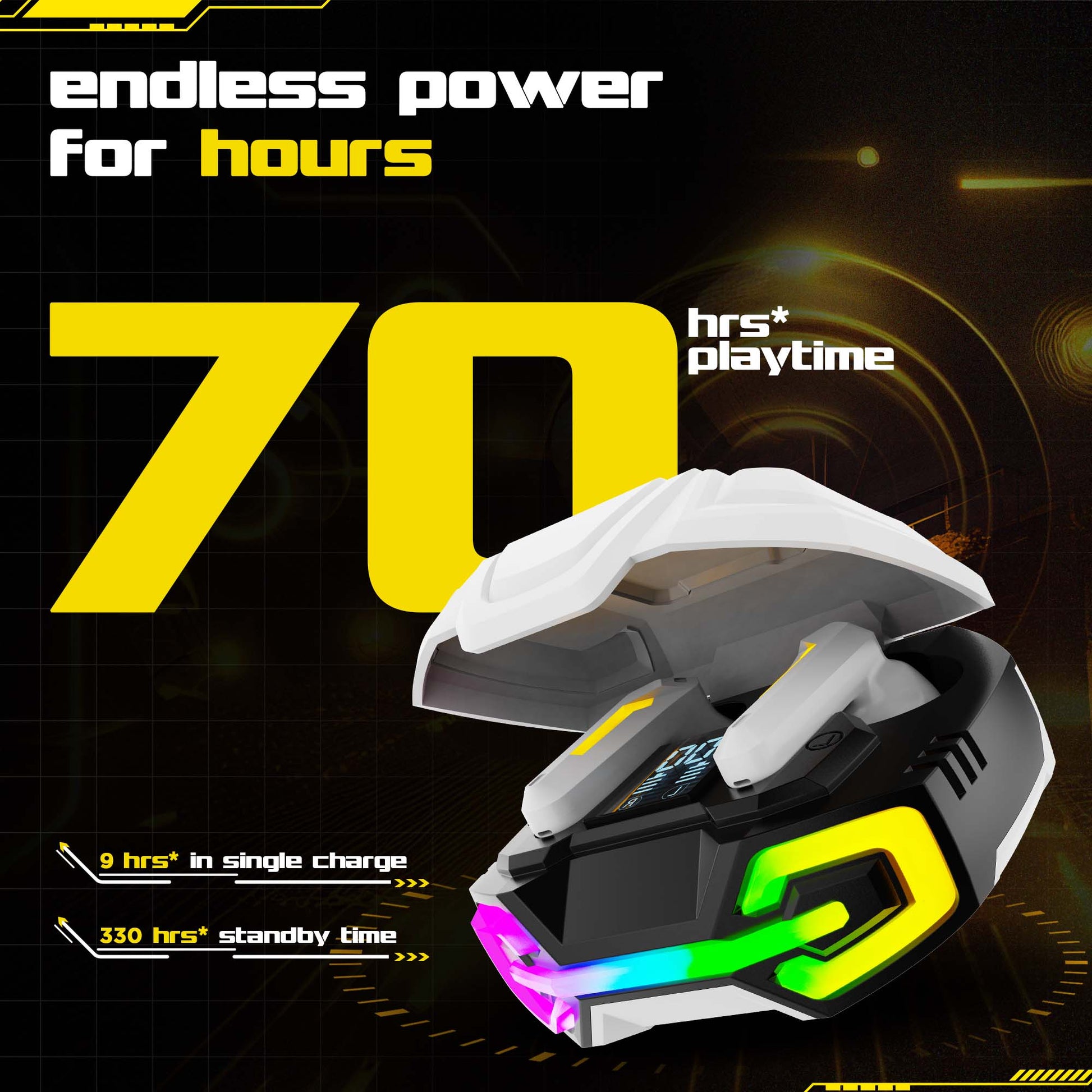 Nu Republic’s Cyberstud X7 Earbuds deliver top-tier performance with ANC+ENC noise cancellation, 40ms low latency, and 70 hours of playtime. Quad mics ensure clear calls, while 13mm neodymium drivers with X-Bass® tech provide deep sound. Dual audio modes, RGB lights, and a fidget-friendly design make them perfect for music and gaming alike.