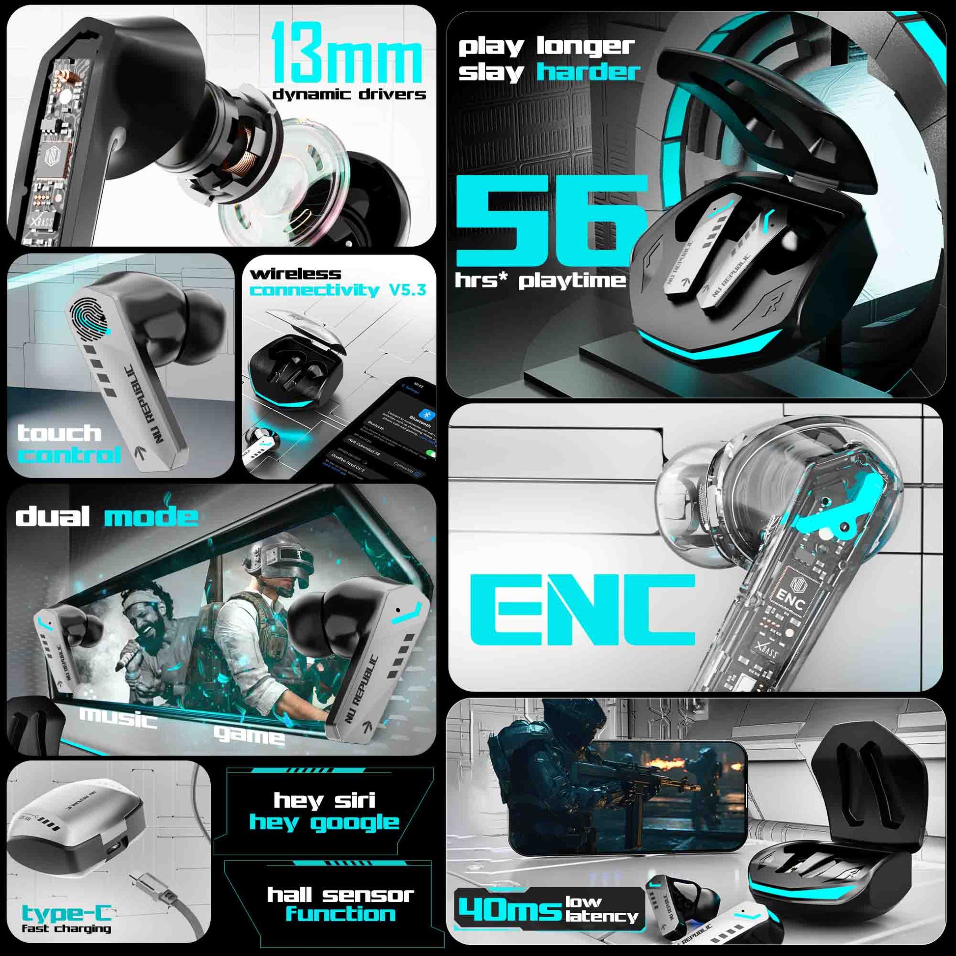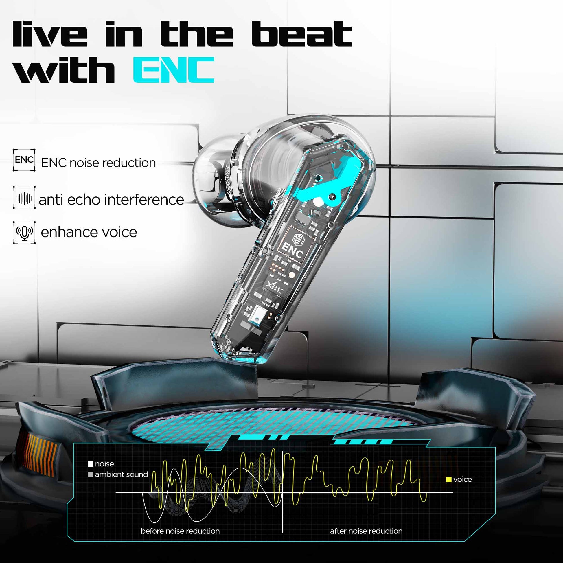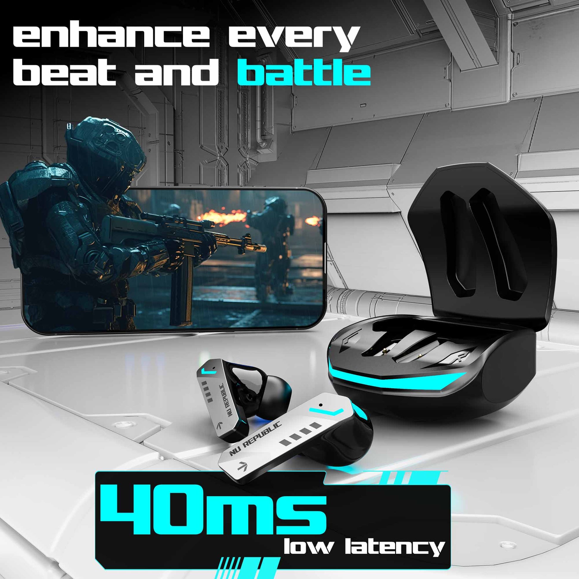 The Nu Republic's Cyberstud X8 True Wireless Earbuds offer cutting-edge features for an unmatched audio experience. Enjoy environmental noise cancellation ENC, ultra-low 40ms latency, an impressive 56 hours* of playtime, and quad mics for crystal-clear calls. Powered by 13mm neodymium drivers with X-Bass® technology, the Cyberstud X8 is the ultimate companion for both music lovers and gamers.