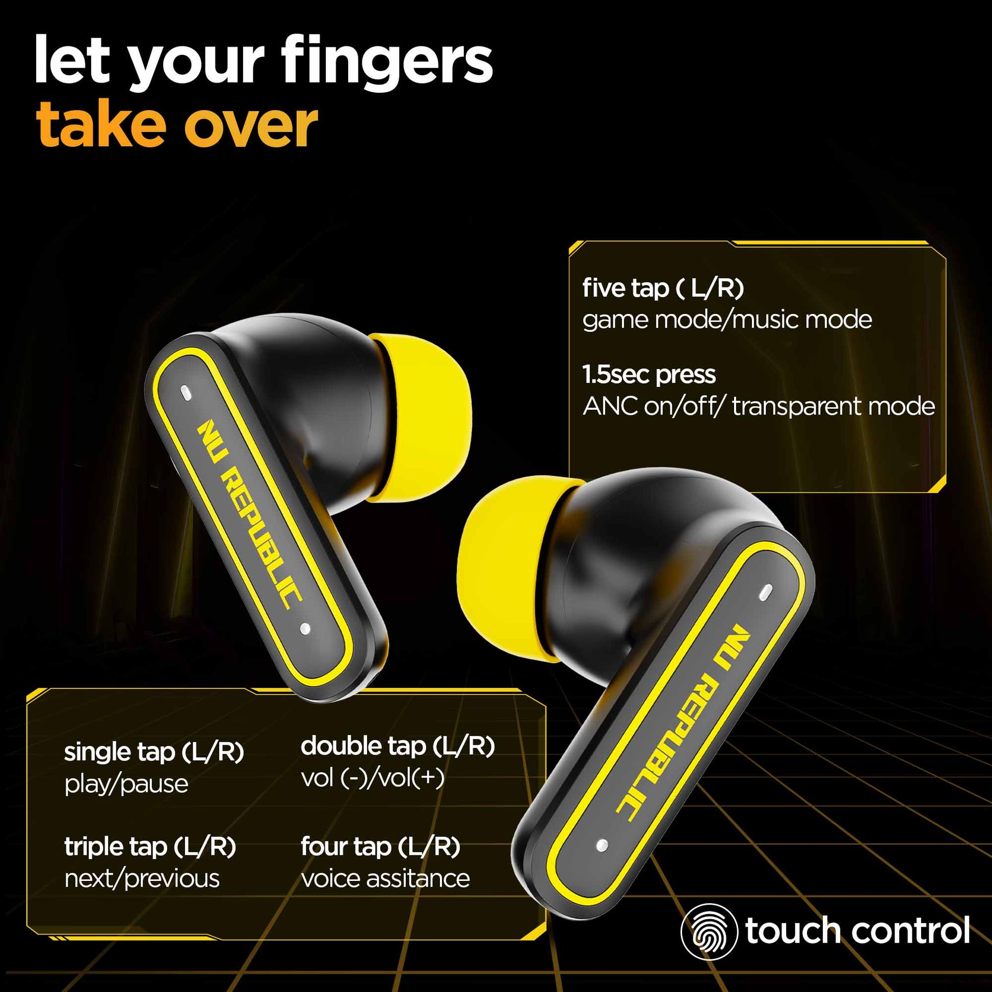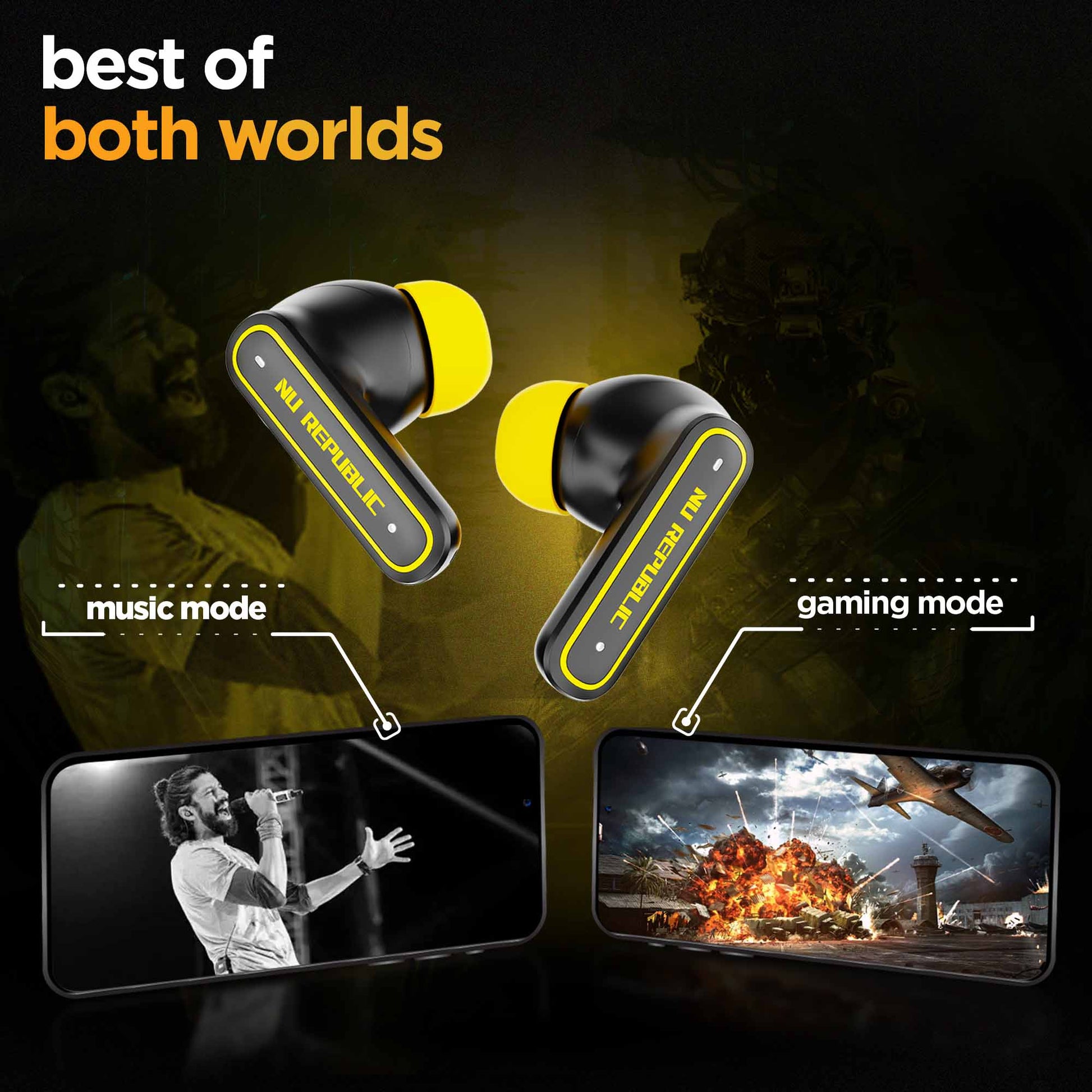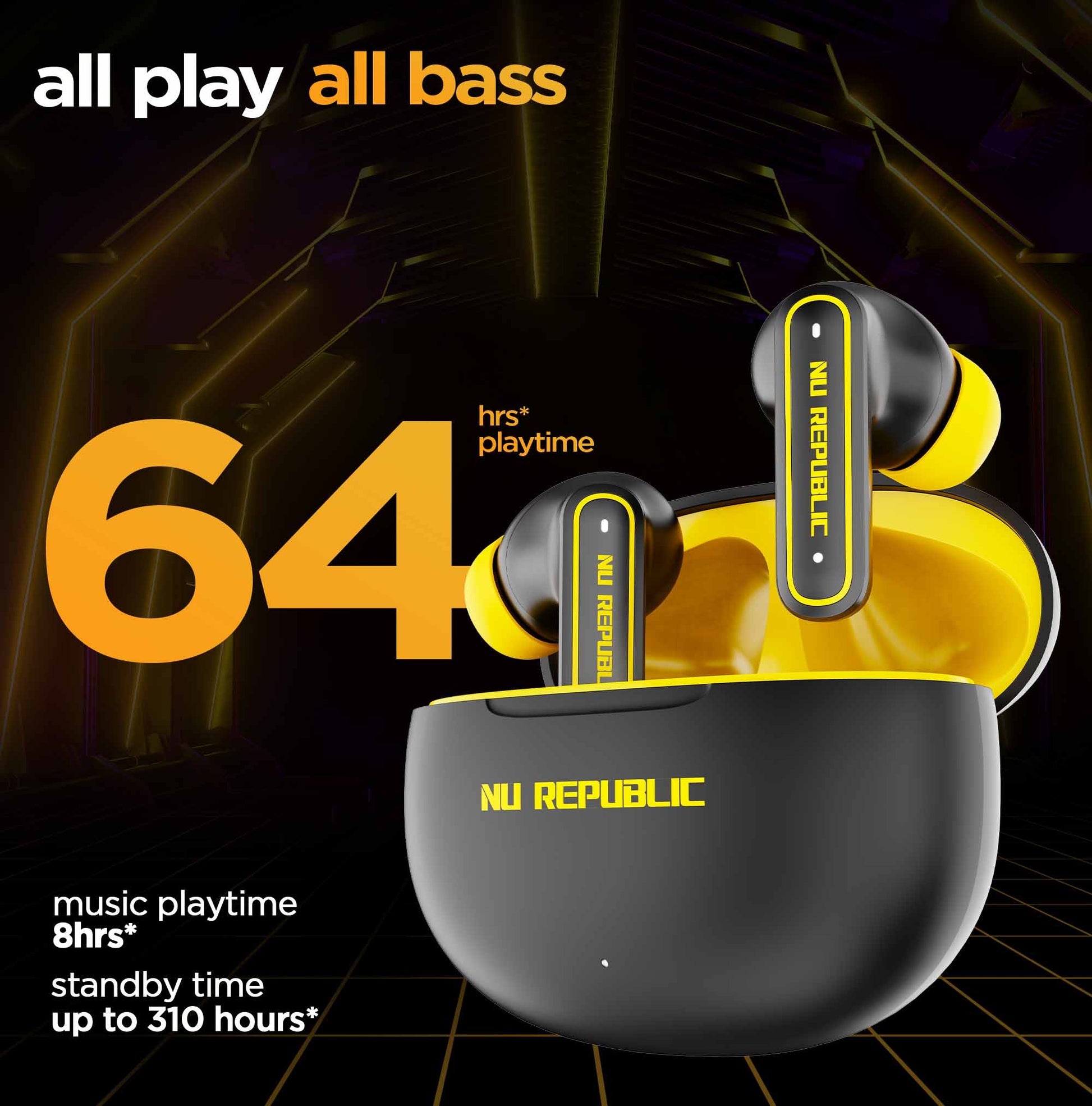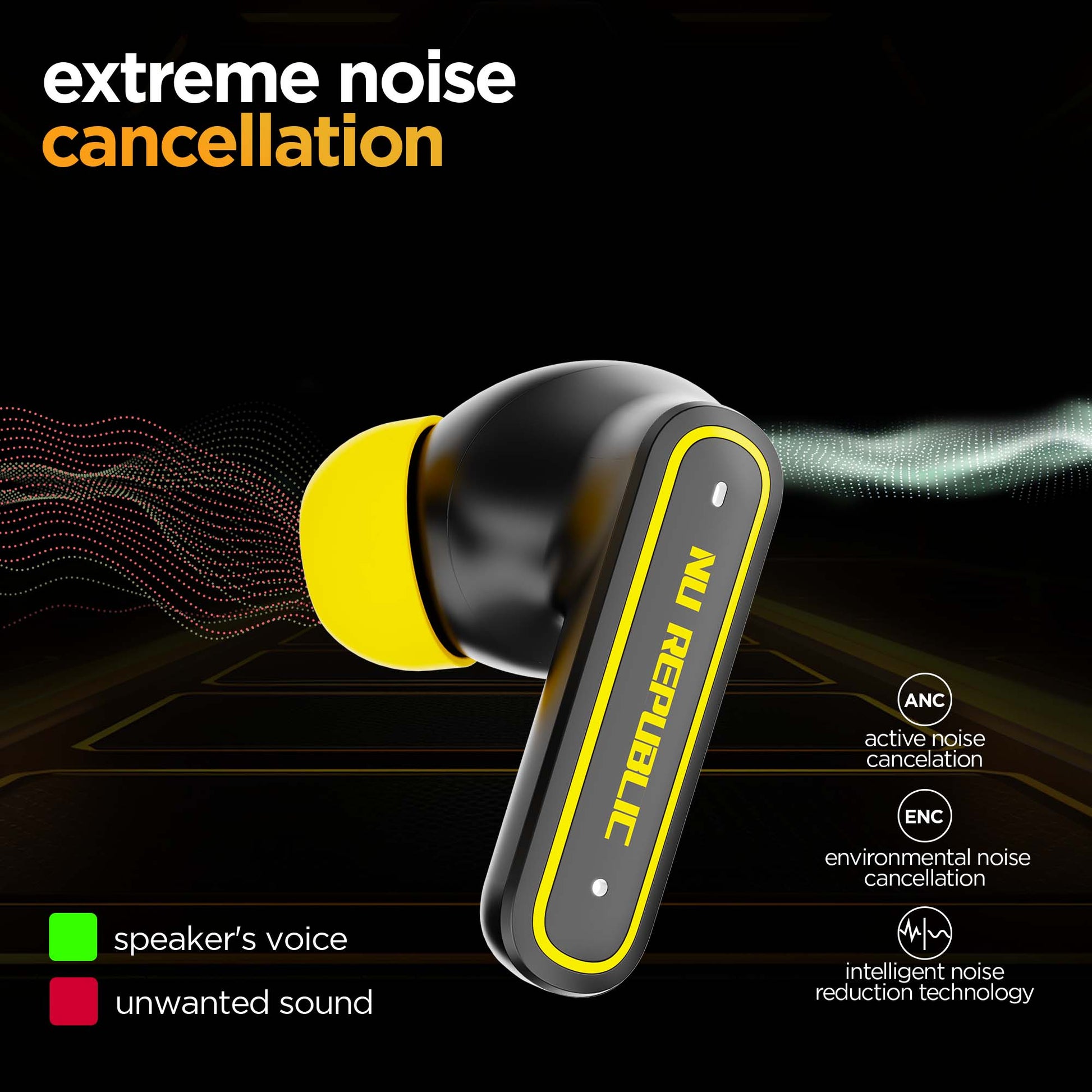 Experience pure bass with our 13mm neodymium drivers and our patented X-Bass® technology. Work or play enjoy your sound the way you want with dual audio modes for music and gaming. experience sound in a nu light with Nu Republic's Epic ANC earphones.