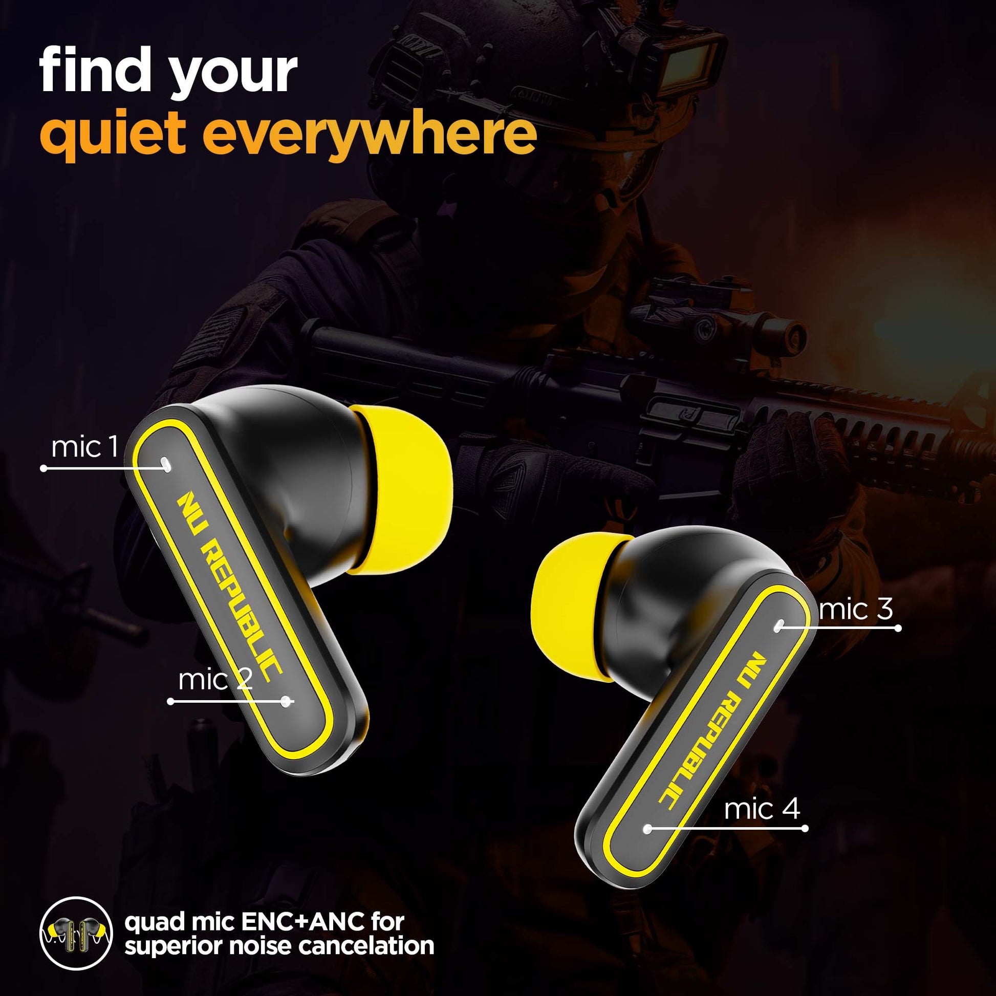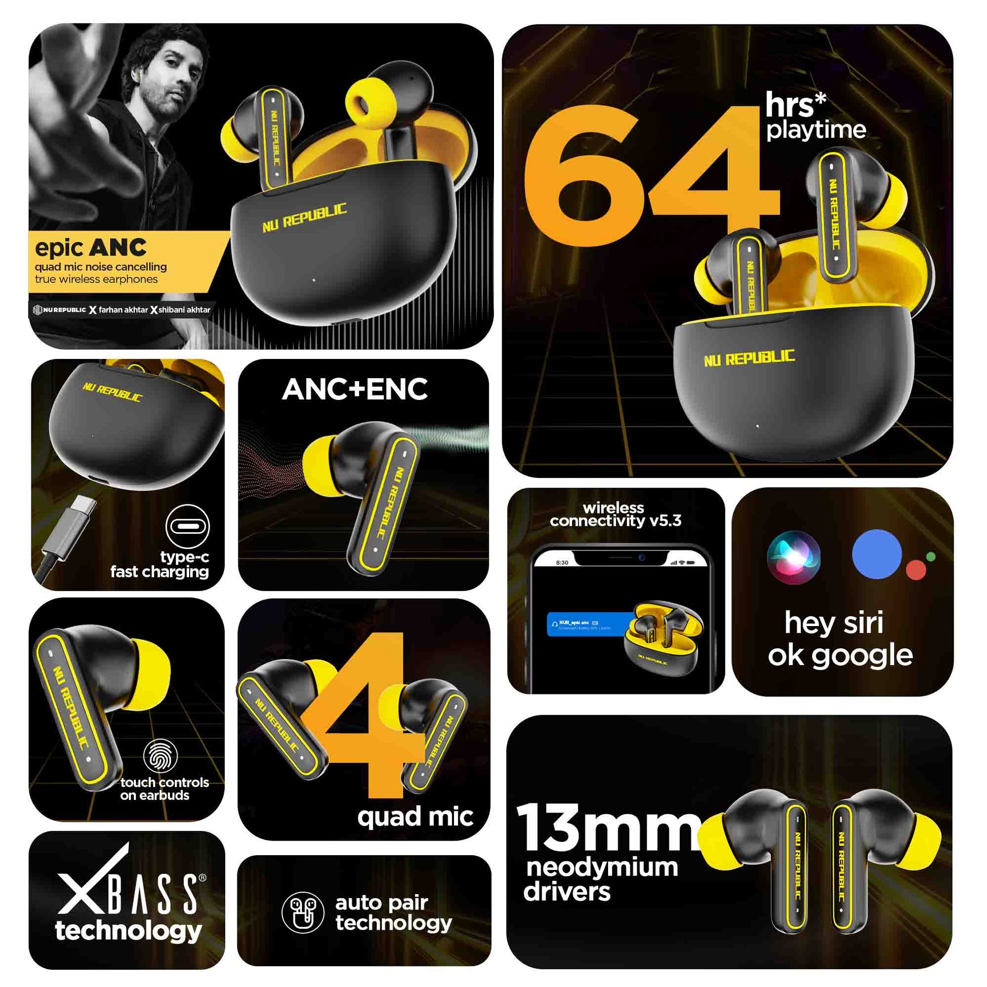 Nu Republic's Epic ANC true wireless earbuds offer ultimate noise cancellation like never before. A superior combination of ENC and ANC with quad mics keep you in control of the noise around anywhere and everywhere you go.