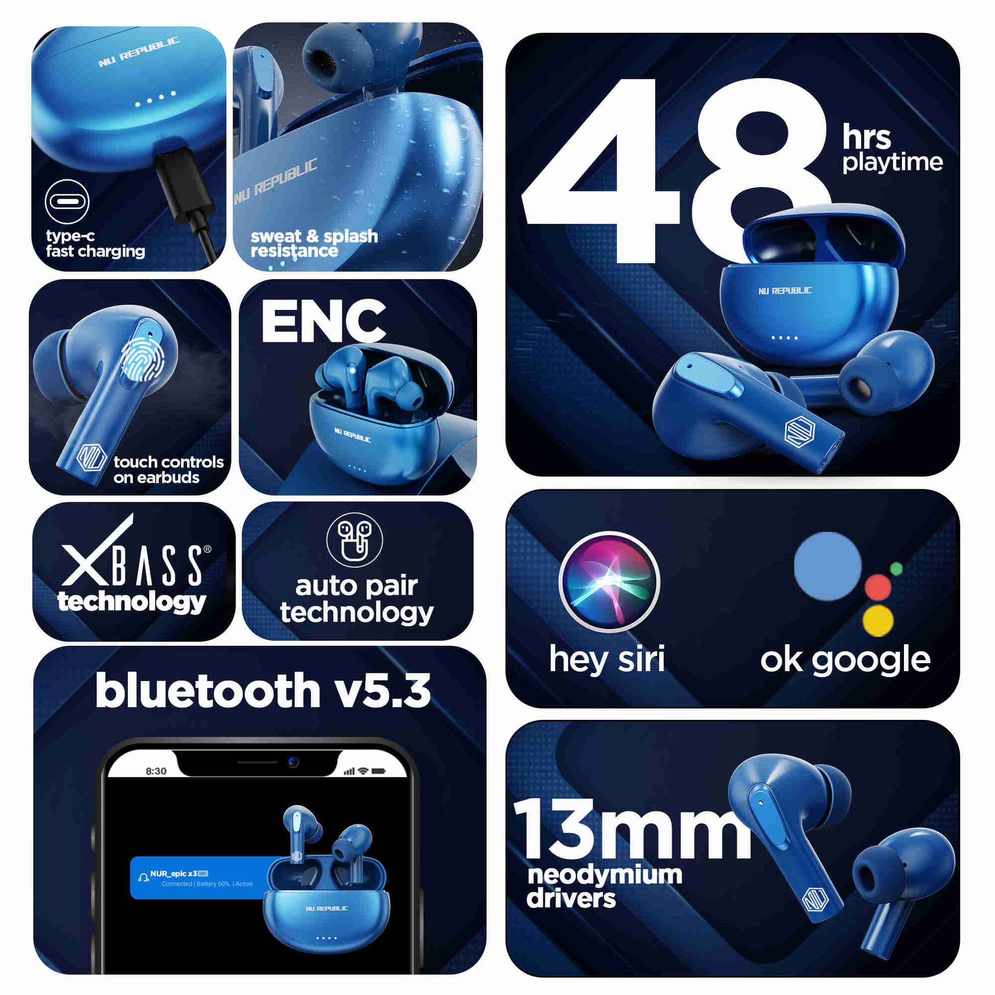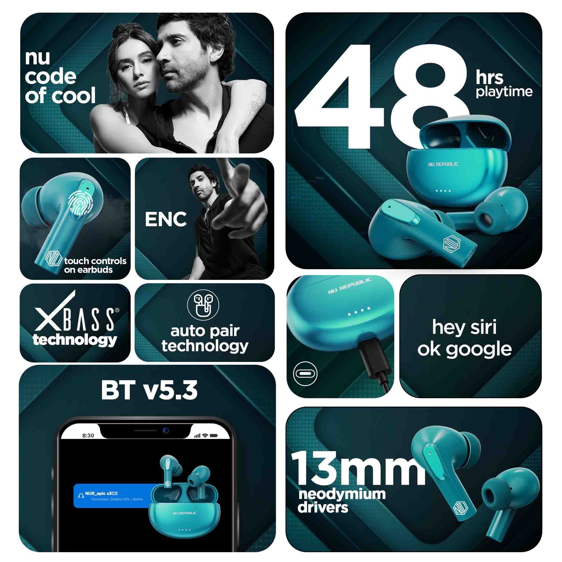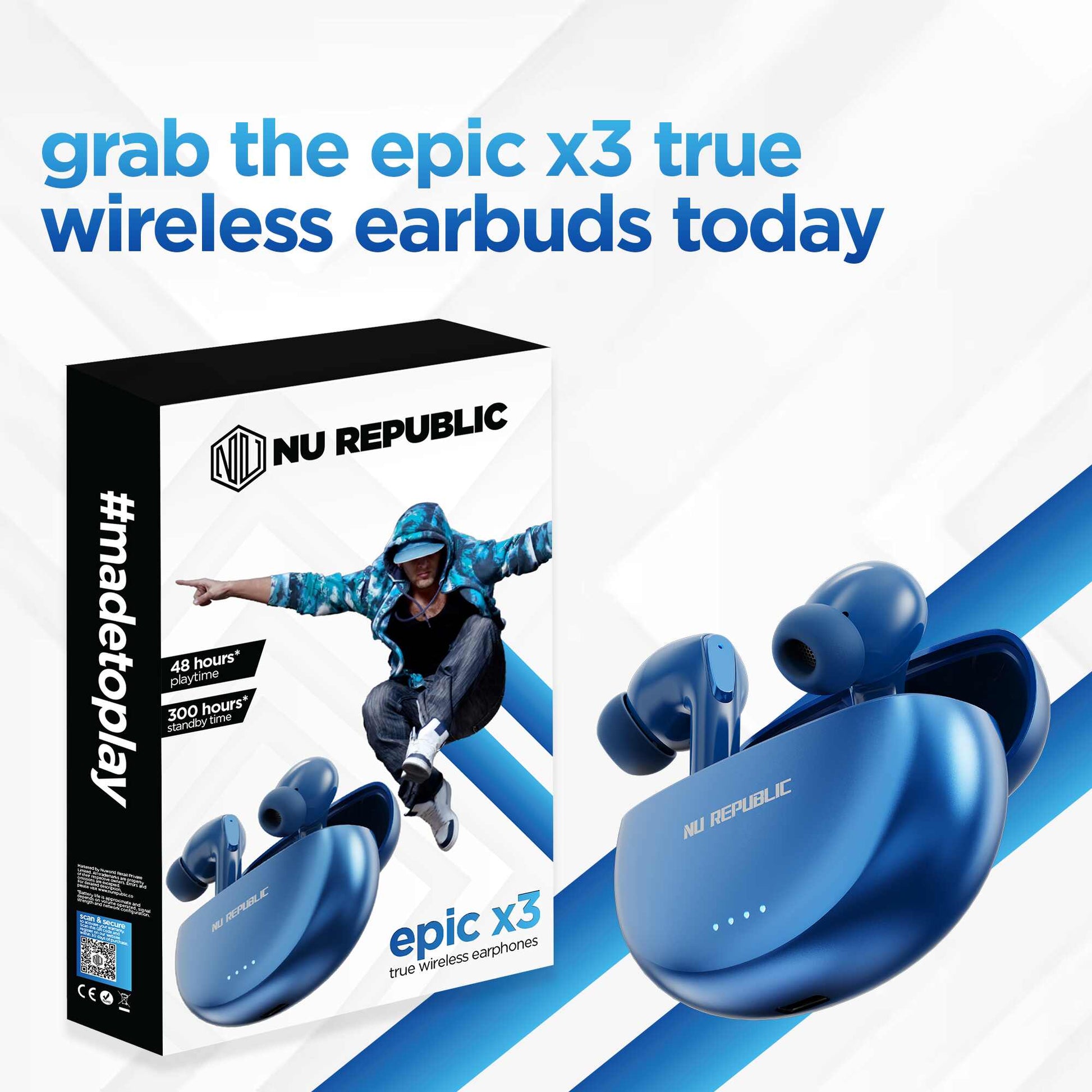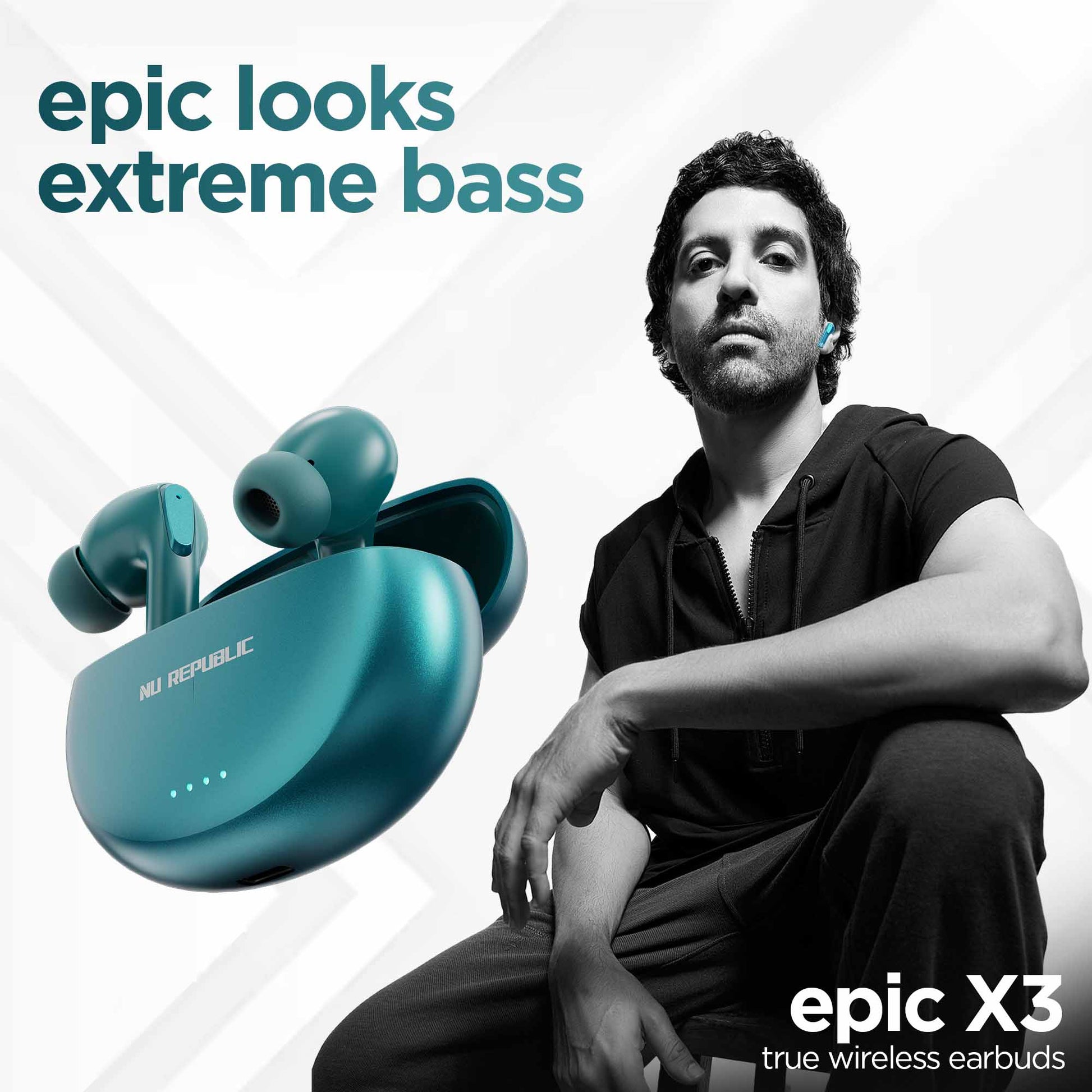 Epic X3 true wireless earphones feature 13mm neodymium drivers and powerful dual mics with built-in ENC. Experience bass like pure bliss for a long time with a 48-hours* playback time.