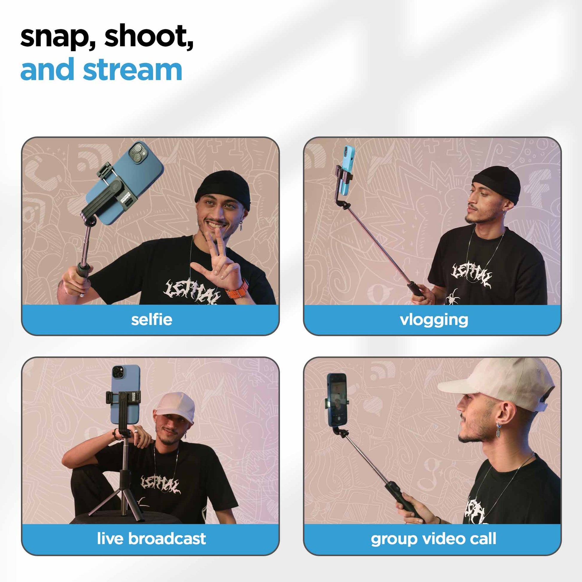 The dubstep's flickstick extendable selfie stick offers unmatched stability, flexibility, and convenience, letting you showcase yourself andyour content with ease. Its adjustable height boosts the quality and professionalism of live streams and video meetings, ensuring a distraction free experience.