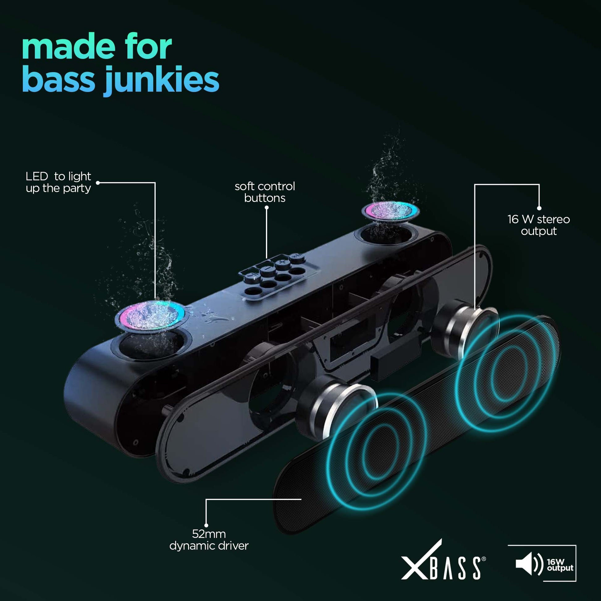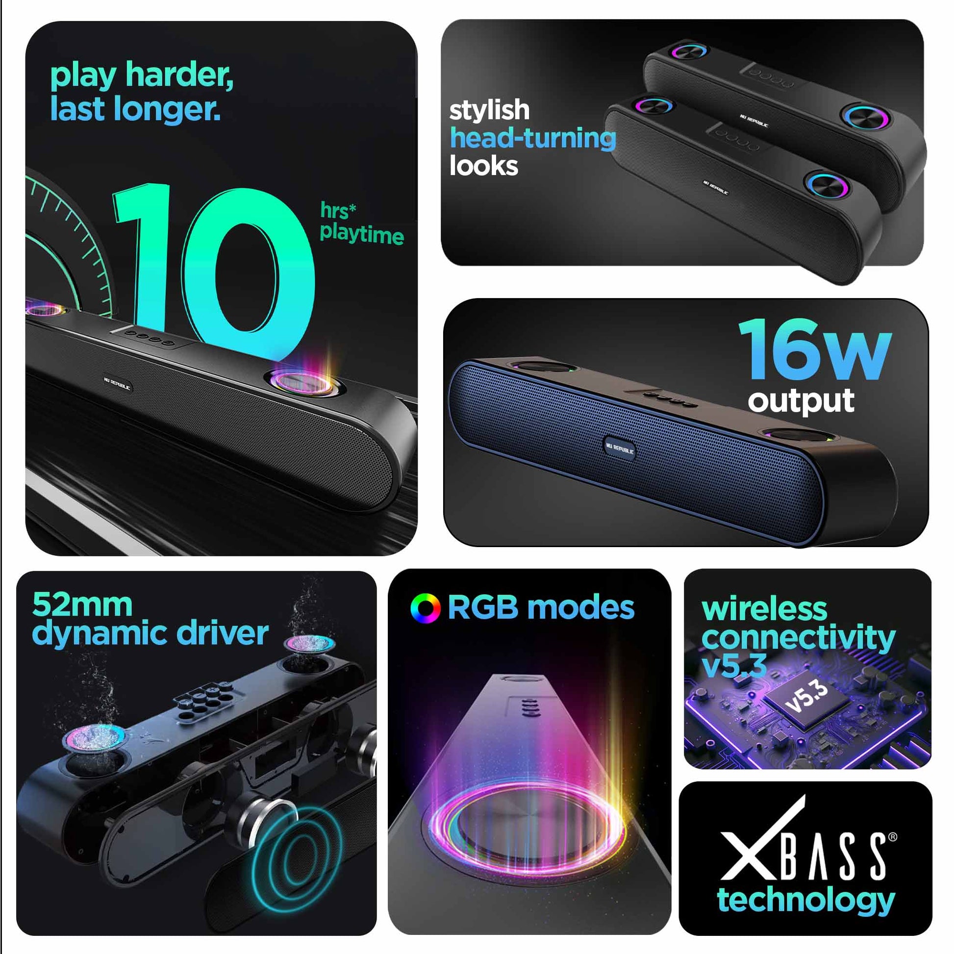 Powered by Nu Republic’s X-Bass™ technology, Party Box 16 pumps out 16W of pure, hard-hitting bass that’ll rock your parties