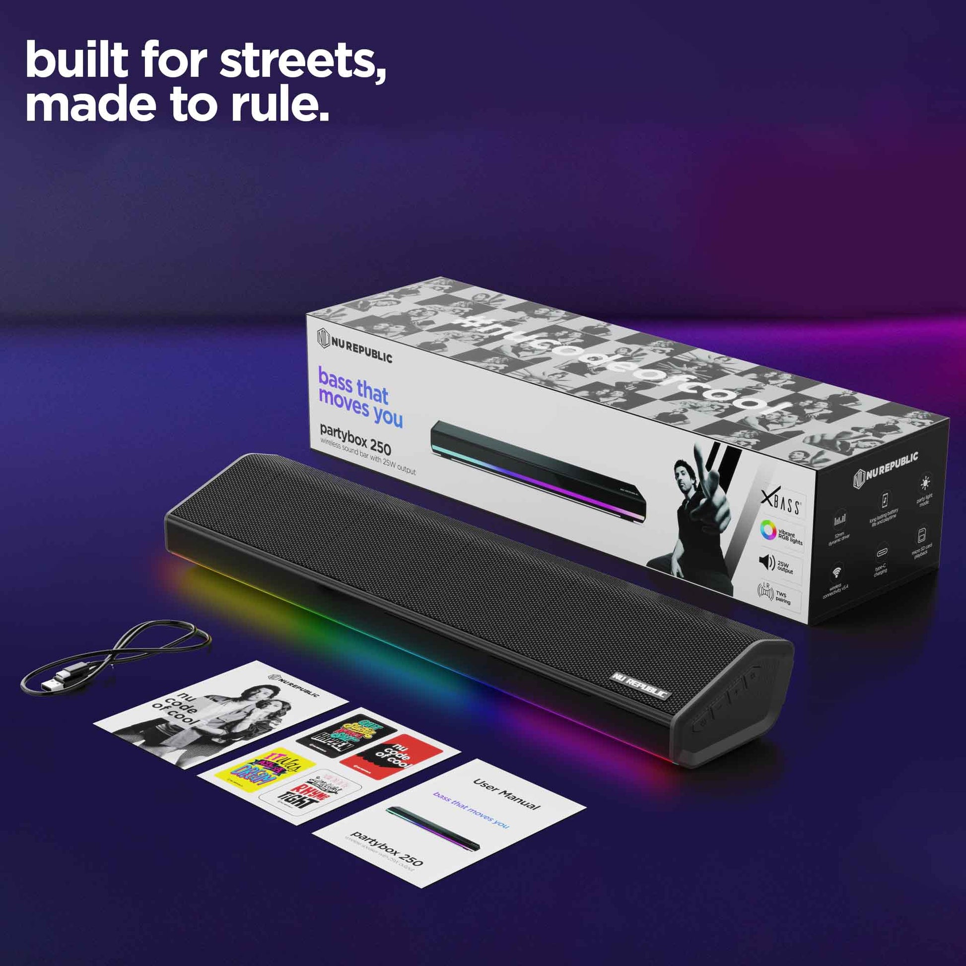 Introducing the Nu Republic Partybox 250 — a powerful, bass-thumping speaker that blends bold sound with eye-catching style. Built to stand out and amp up any room with unstoppable energy.