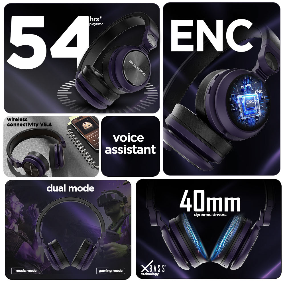 Built to rule your sound world. With 54 hours playtime*, ultra-low 40ms latency for lag-free gaming, and ENC for noise-free calls, it’s your all-in-one beast for music, gaming, and everything in between.