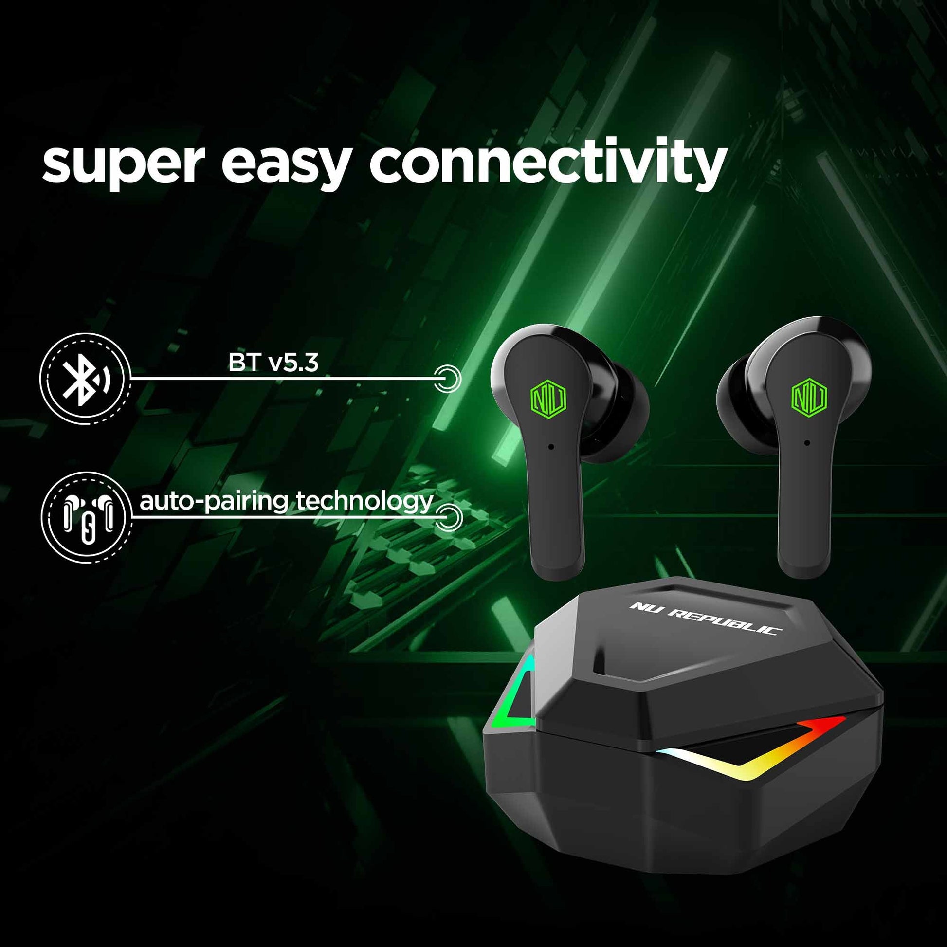 Nu Republic’s Starbuds Z true wireless earbuds feature bone-rattling bass with 13mm neodymium drivers powered by our patented X-Bass® technology. own your surroundings with active ENC and dual audio modes for an immersive gaming and music experience. get heads turning with flashing LED lights and a sleek finish.