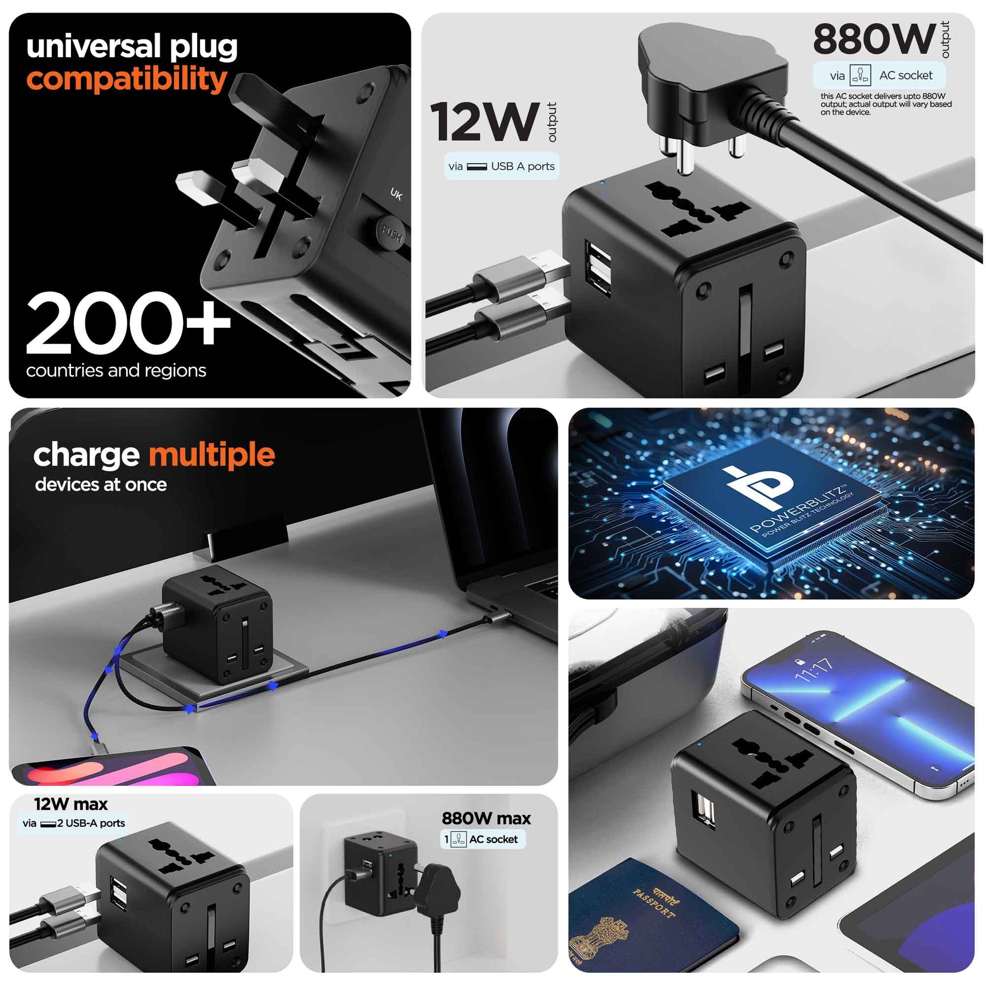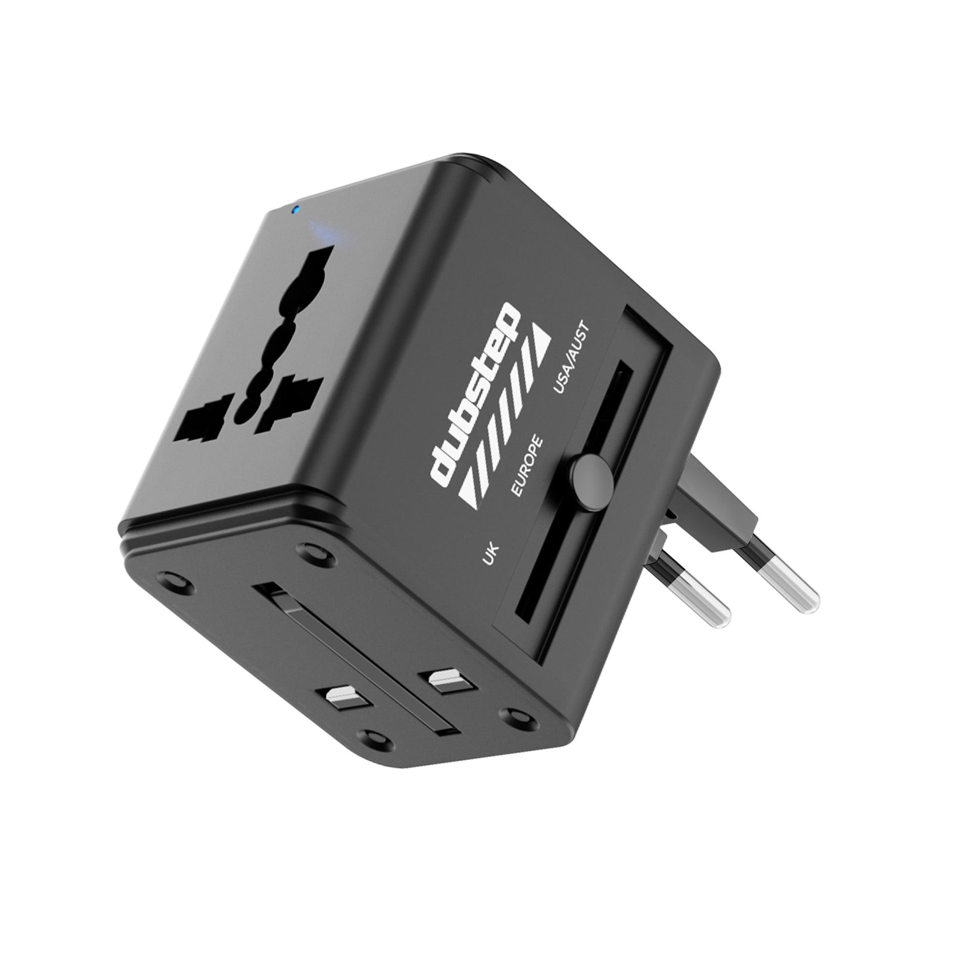 Stay powered worldwide with Dubstep® Voyager 12W Adapter — dual USB ports, universal plug support, LED indicator, and smart protection for safe, seamless charging anywhere.