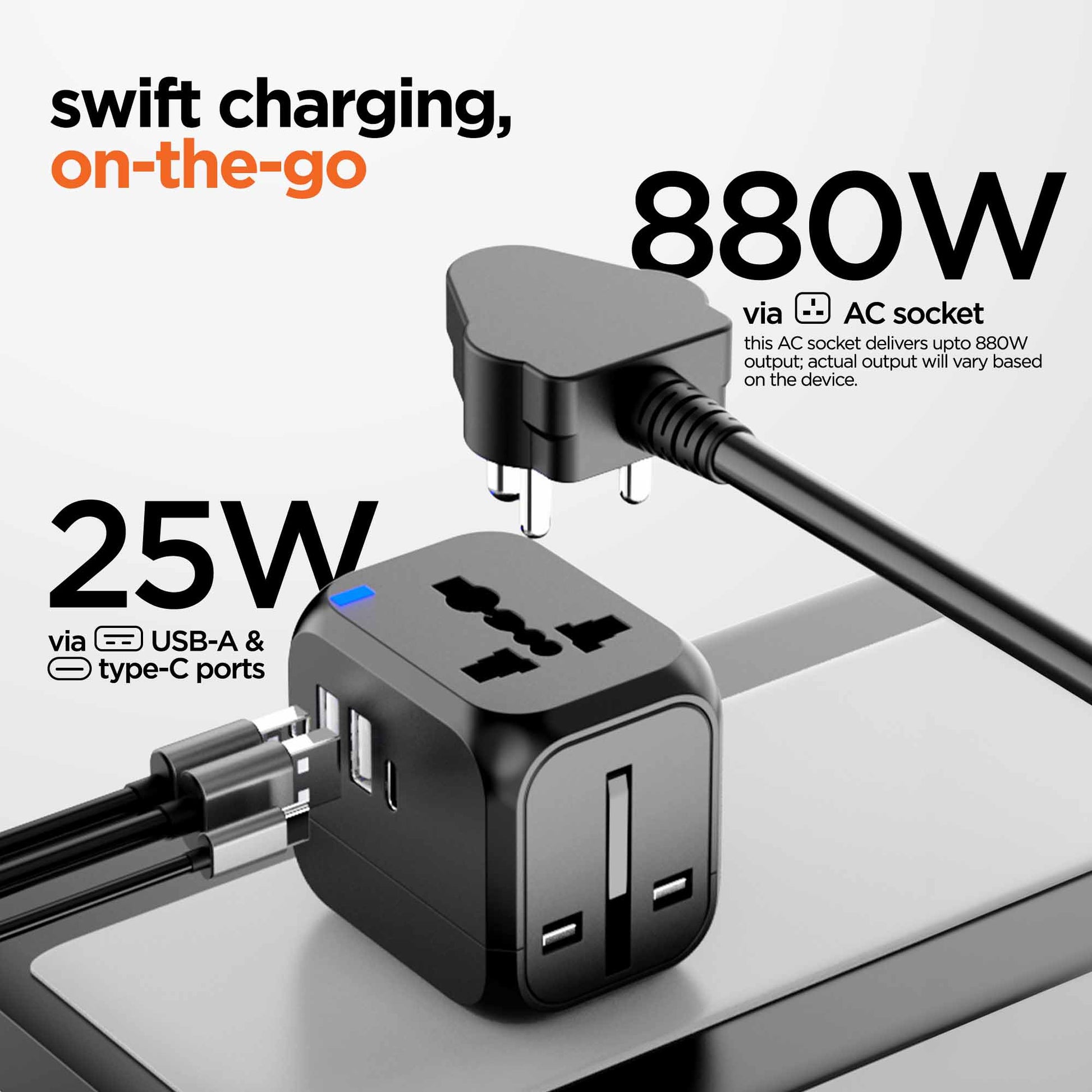 Stay charged anywhere with Dubstep® Voyager 25W — dual USB-A, Type-C, Powerblitz™ tech, global plug support, and smart protection for safe, efficient worldwide charging.