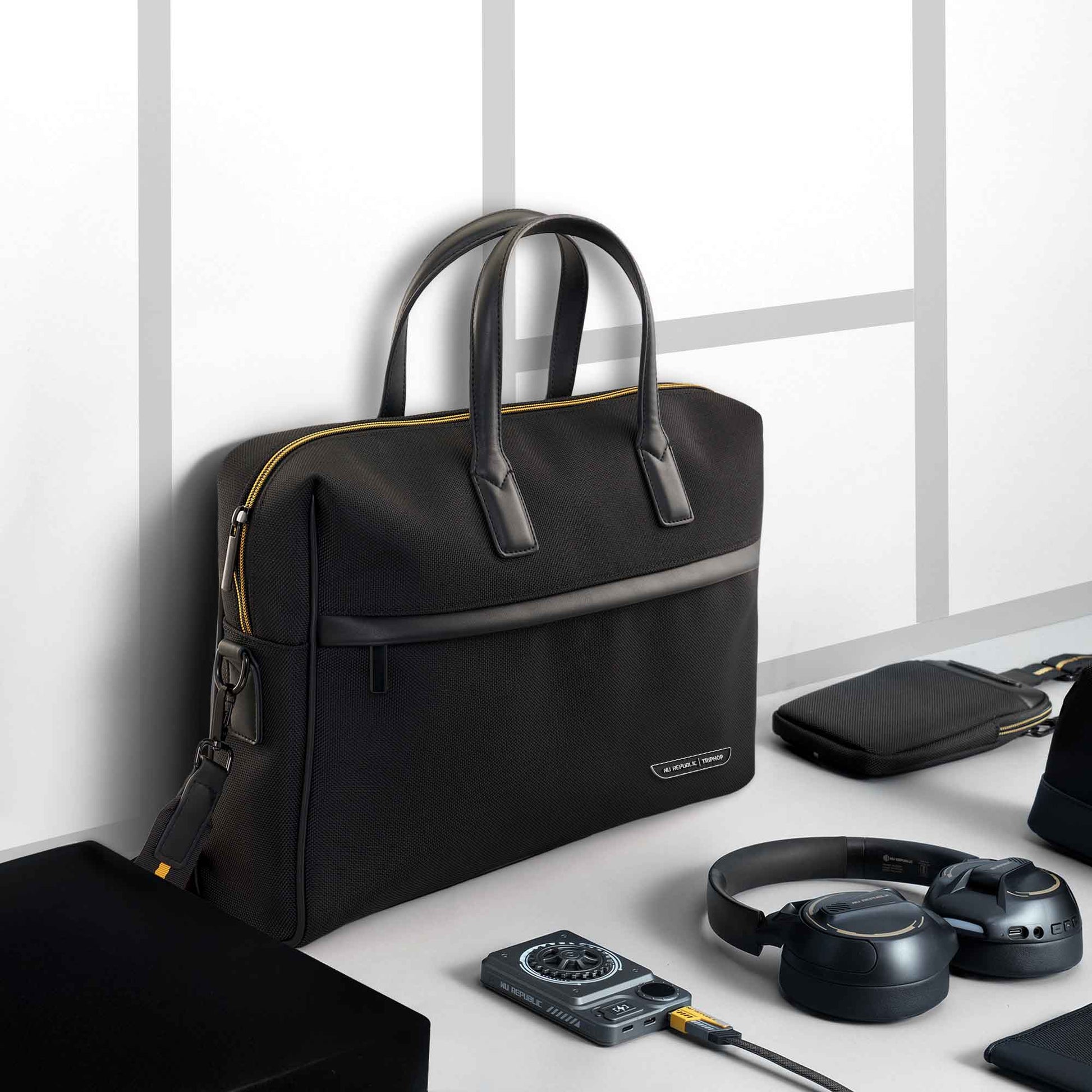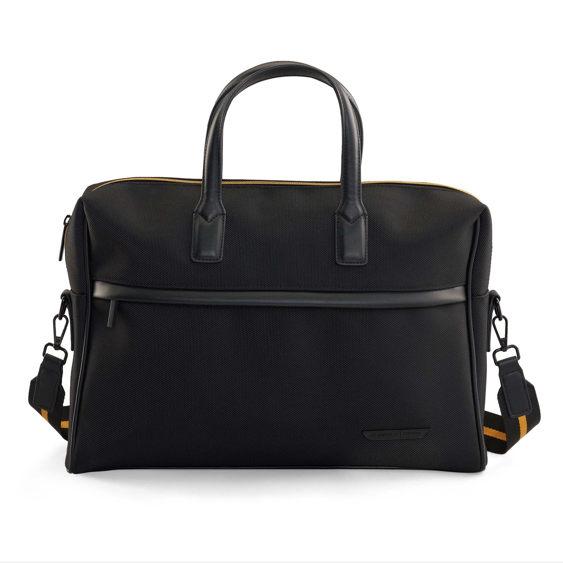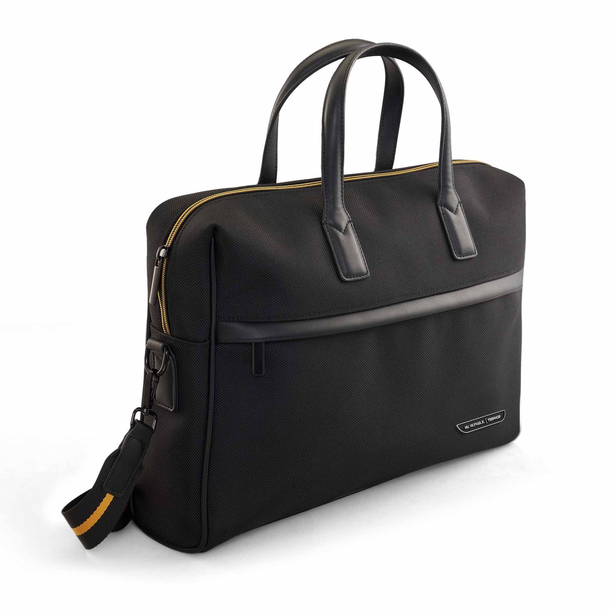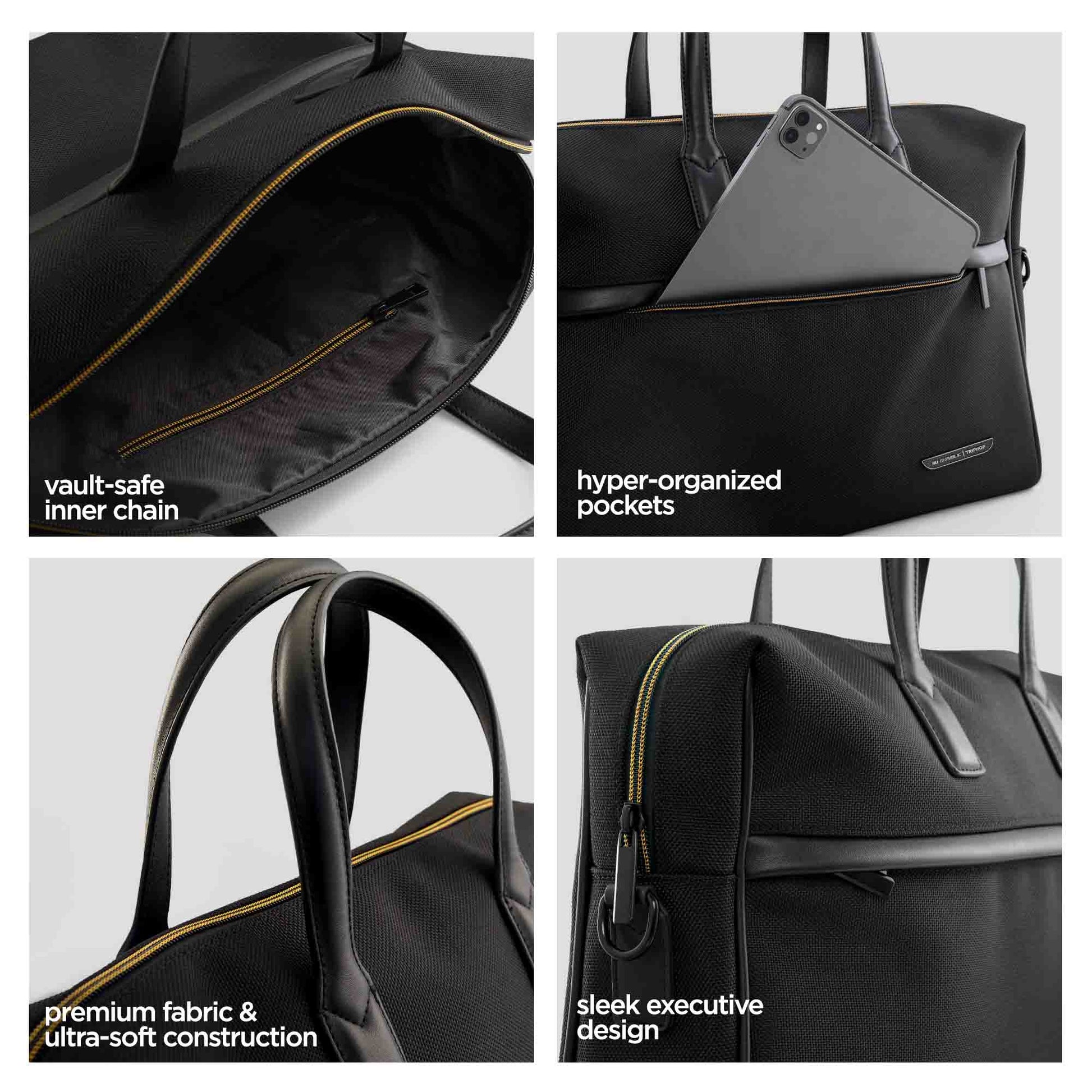 Crafted with water resistant Vegan Leather and Premium Nylon fabric, laptop and tablet compartments, numerous interior and exterior pockets and a removable shoulder strap, zippered pockets, Lightweight build, Timeless Design, Splash-dust & Scratch Resistant, Luxury Embossed Logo.